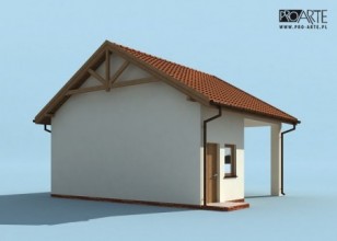 Projekt wiaty dwustanowiskowej z pomieszczeniami gospodarczymi w szkielecie drewnianym