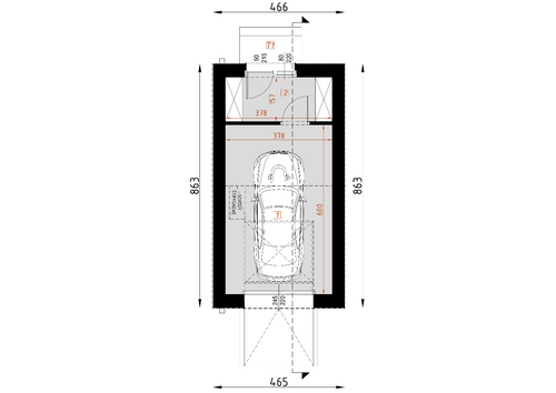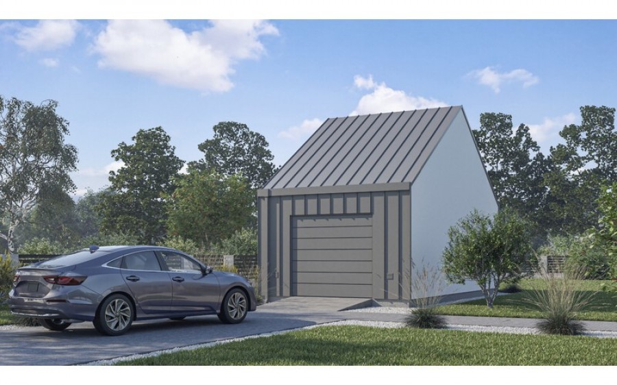 Garaż wolnostojący jednostanowiskowy w technologii murowanej.