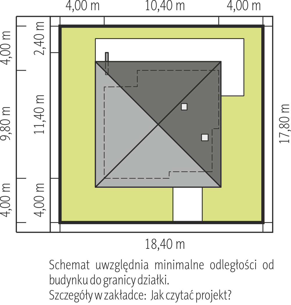 Dom parterowy, przeznaczony dla 3-4-osobowej rodziny. Układ pomieszczeń podzielono na strefę dzienną i prywatną. W części ogólnej znajduje się wiatrołap z przejściem przez hall do otwartej przestrzeni przeszklonego salonu wraz z jadalnią i kuchnią. Z kuchni dostępne jest pomieszczenie gospodarcze. Istnieje możliwość wydzielenia osobnej kuchni. Część sypialna składa się z hallu i dostępnej z niego łazienki oraz dwóch pokoi. Istnieje wersja projektu z pokojem dziennym na elewacji frontowej - Rademenes I.