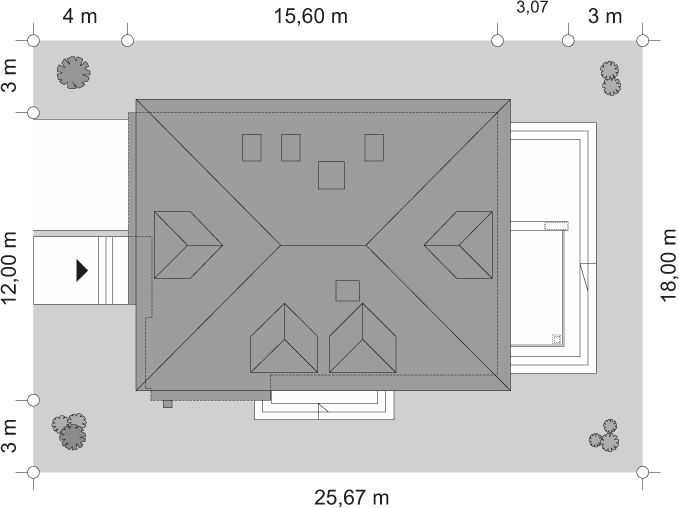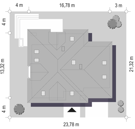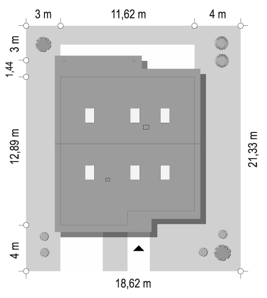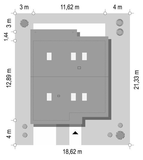Projekt o klasycznej bryle, wzbogacony o funkcjonalne rozszerzenie w postaci garażu. Dom przewiduje praktyczny rozkład pomieszczeń z naciskiem na wygodę mieszkańców i dobre relacje między strefami. Idealny kompromis między tradycyjnym stylem a codzienną ergonomią.