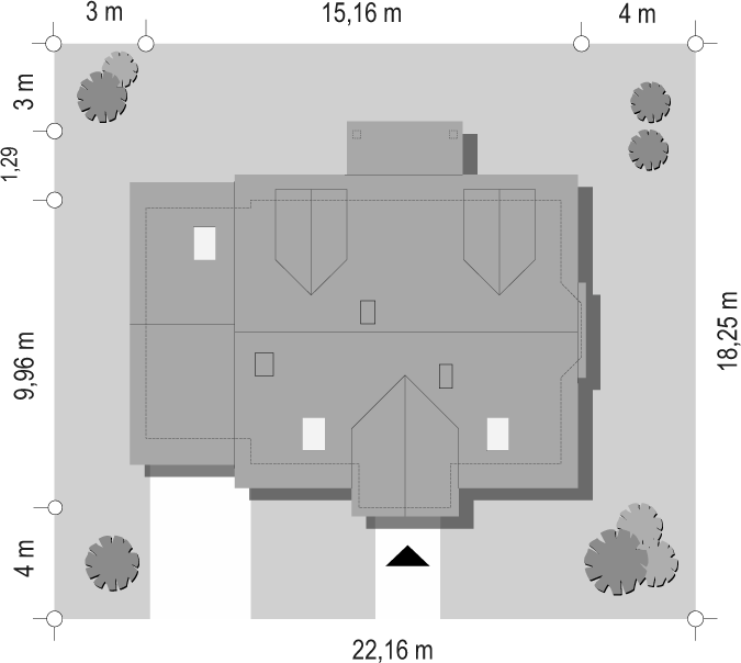 Projekt o klasycznej bryle, wzbogacony o funkcjonalne rozszerzenie w postaci garażu. Dom przewiduje praktyczny rozkład pomieszczeń z naciskiem na wygodę mieszkańców i dobre relacje między strefami. Idealny kompromis między tradycyjnym stylem a codzienną ergonomią.