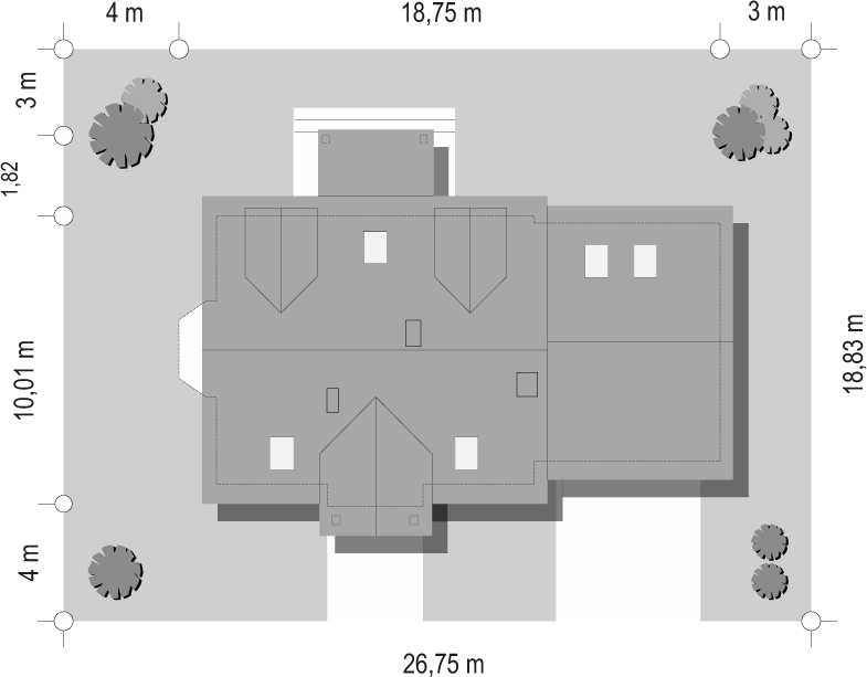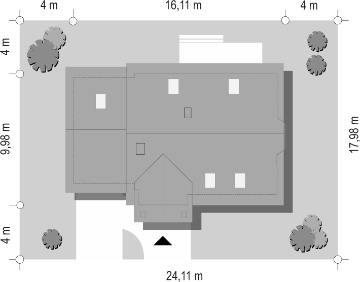 Projekt dla 4–6 osób, łączący klasyczną formę z nowoczesnymi detalami. Parter z poddaszem użytkowym, dwuspadowym dachem i dobudowaną częścią garażową. Przeszklenia narożne, zadaszone tarasy, antresola nad jadalnią oraz stonowana, elegancka elewacja dodają bryle lekkości. Doskonały wybór dla tych, którzy chcą domu komfortowego i z charakterem, bez rezygnacji z funkcjonalności.